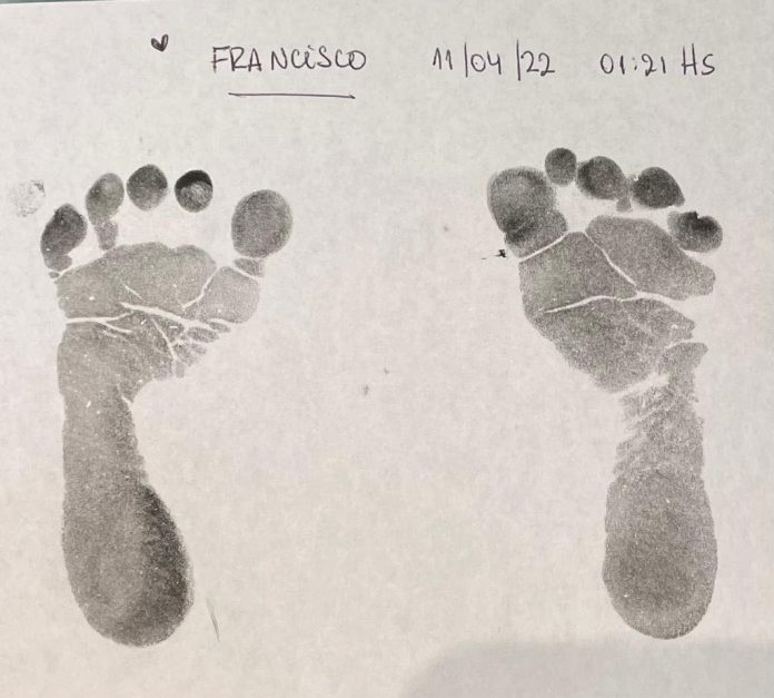 Criança recebeu o nome de Francisco, o mesmo escolhido pelo argentino Dom Bergoglio ao se tornar Papa. Impressão dos pés do recém-nascido Francisco, filho do presidente argentino, Alberto Fernández, com a primeira-dama, Fabiola Yañez, em 11 de abril de 2022