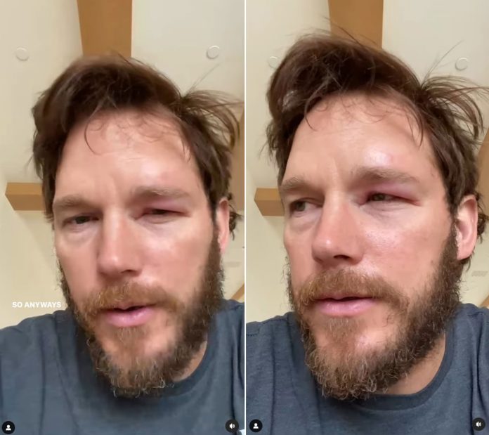 Chris Pratt compartilhou que levou uma picada de abelha no rosto nesta semana.