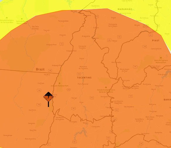 O fim de semana de Natal deve ser chuvoso em todo Tocantins. Neste sábado (24) o Instituto Nacional de Pesquisas Espaciais (Inpe) emitiu um alerta laranja para todo o território do estado.
